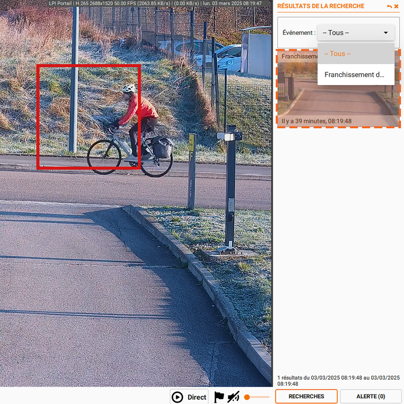 Le logiciel affiche automatiquement tous les événements trouvés pour la ou les caméras affichées.